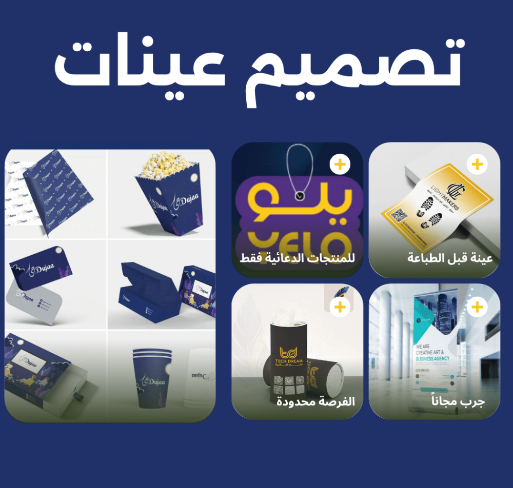 نوفر لك التصاميم المجانية قبل اعتماد اي منتج من منتجاتنا بما يسمى MOCKUP